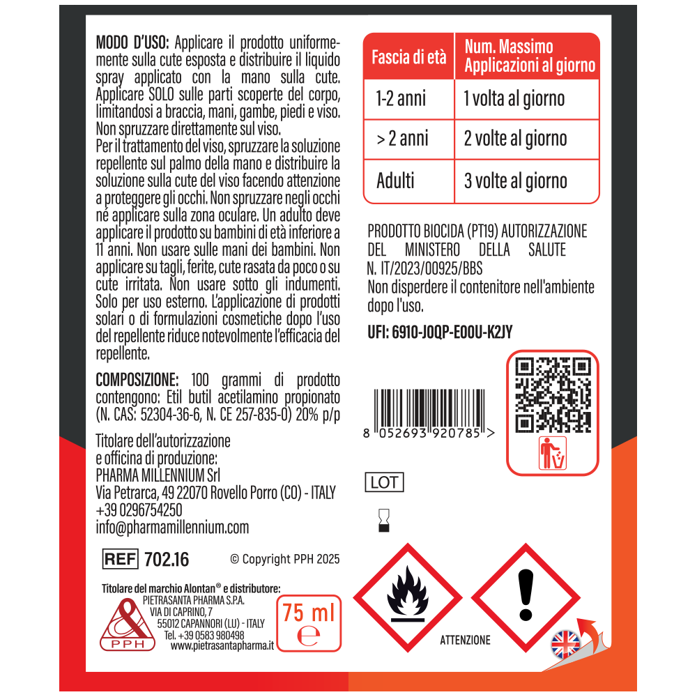 ALONTAN ADVANCE è uno spray insettorepellente a base di etilbutilacetilaminopropionato (in concentrazione del 20%).