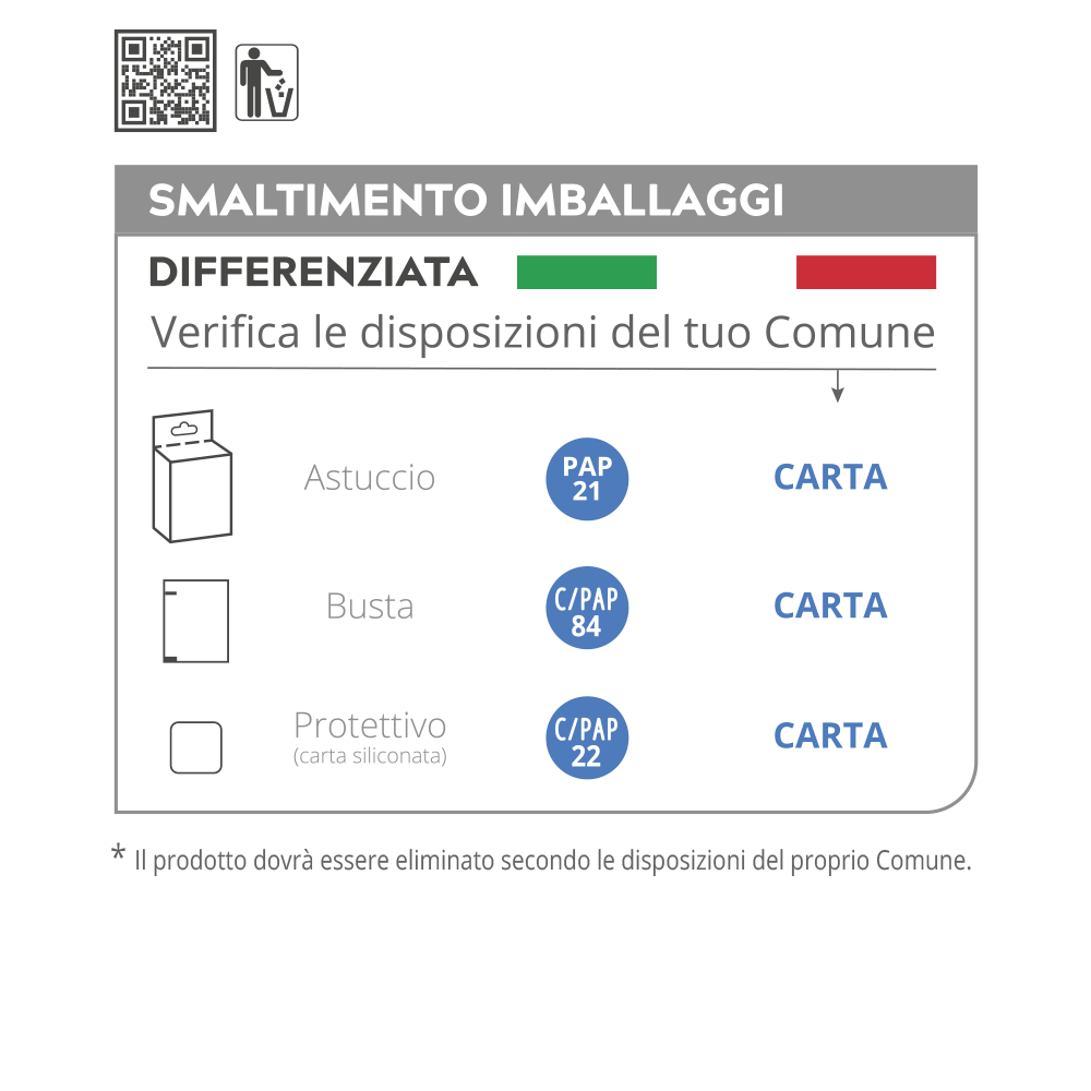- Leggere attentamente le avvertenze riportate sul retro della confezione.