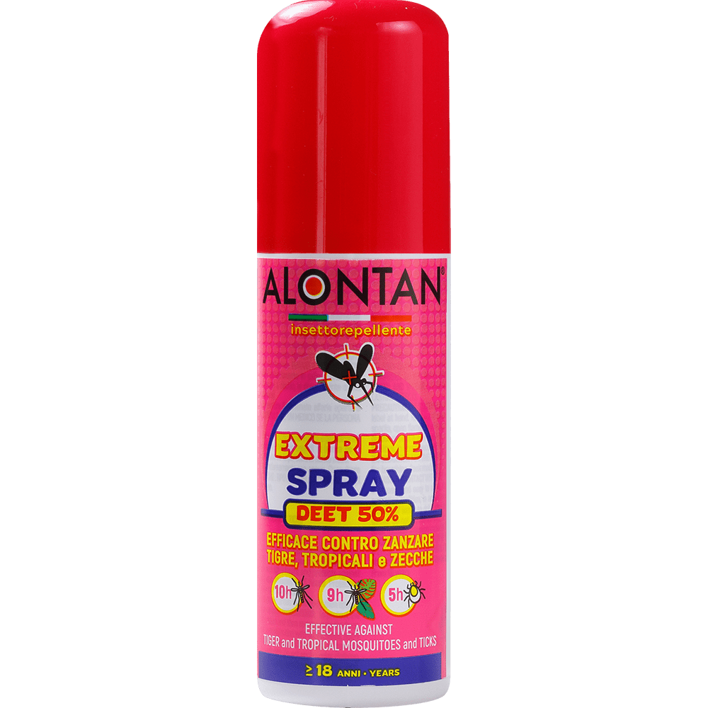 ALONTAN EXTREME è uno spray anti zanzare e anti zecche a base di DEET al 50%