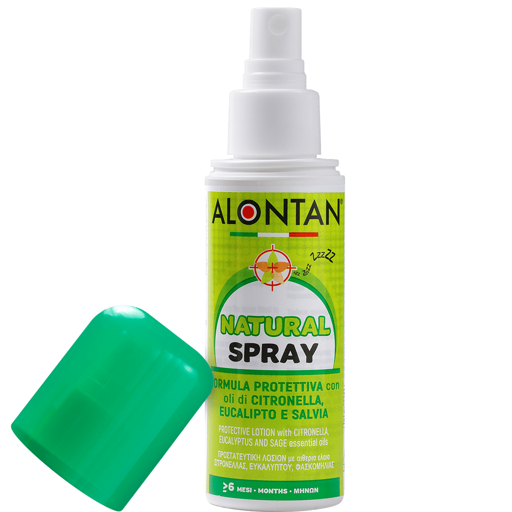 ALONTAN NATURAL è uno spray protettivo a base di citronella, eucalipto, salvia. Queste sostanze di origine vegetale sono estratte da piante note per le loro attività protettive.
