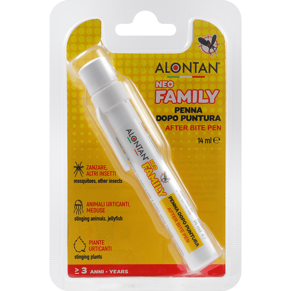 Una linea composta da 2 prodotti insetto repellenti (a base di ICARIDINA 10%) studiati per proteggere la pelle dalle punture di zanzare comuni, zanzare tigre, zanzare tropicali, zecche. Neo Family offre la possibilità di proteggere con elevata efficacia tutti i soggetti a partire dai 3 anni di età. Una linea di prodotti ideale per tutta la famiglia. Ai prodotti insetto repellenti si affianca un prodotto a base di ammoniaca specifico per l’utilizzo come “dopo puntura” (utilizzabile dai 3 anni di età).